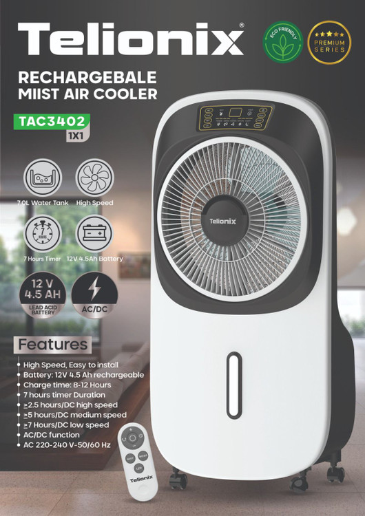 کولر ابی شارژی پرتابل مه پاش دار تلیونیکس مدل Tac3402