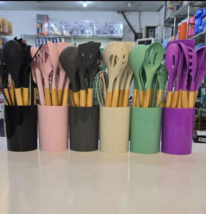 کفگیر و ملاقه ۱۲ پارچه سیلیکونی رنگی
